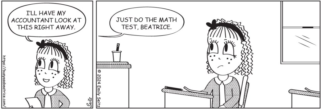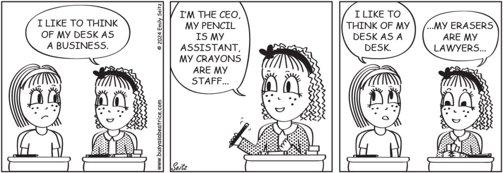 The first Busy as a Beatrice comic strip collection is here! Volume 1 contains 100 comics about eight-year-old Beatrice’s business-inspired antics, from opening a free-range lemonade stand to setting up a boardroom in her dollhouse. She’s got things to do; she’s as busy as a Beatrice.